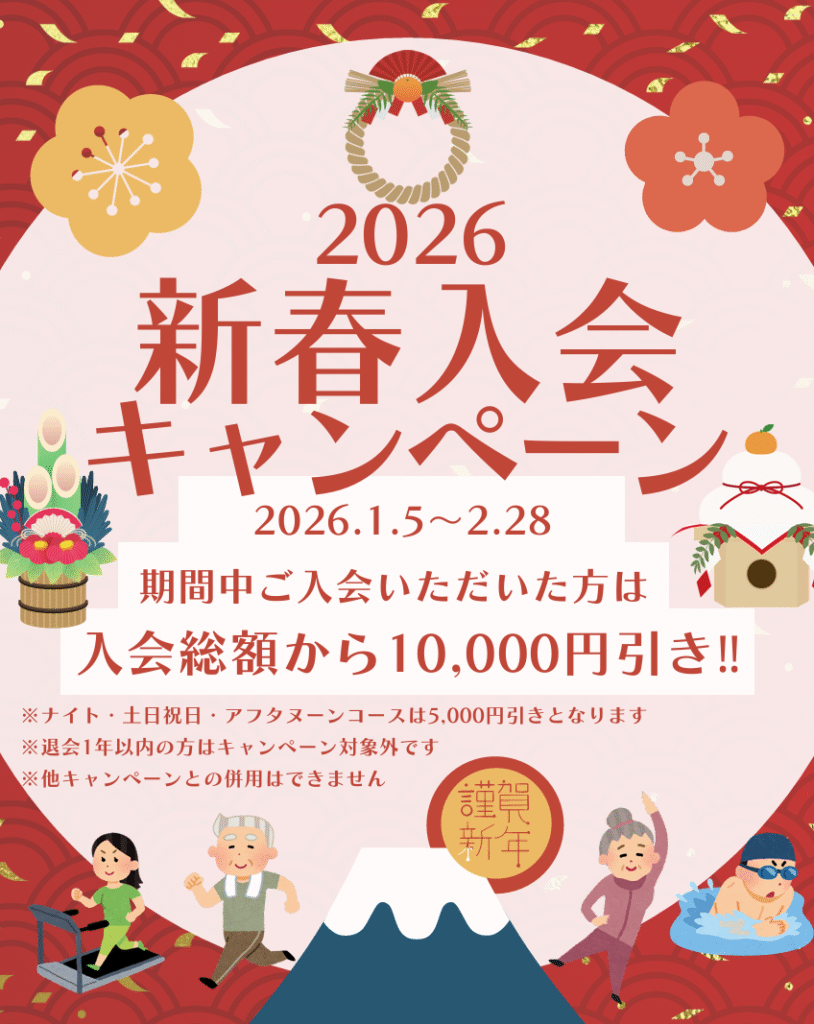新春入会キャンペーン開催‼ 2025.12.252026.02.06 入会の方はこちらからお申込みください! 成人コース 子供コース・ベビーキッズコース 体験をお考えの方はこちらからお申込みください! 成人コース体験 子供コース・ベビーキッズコース 体験